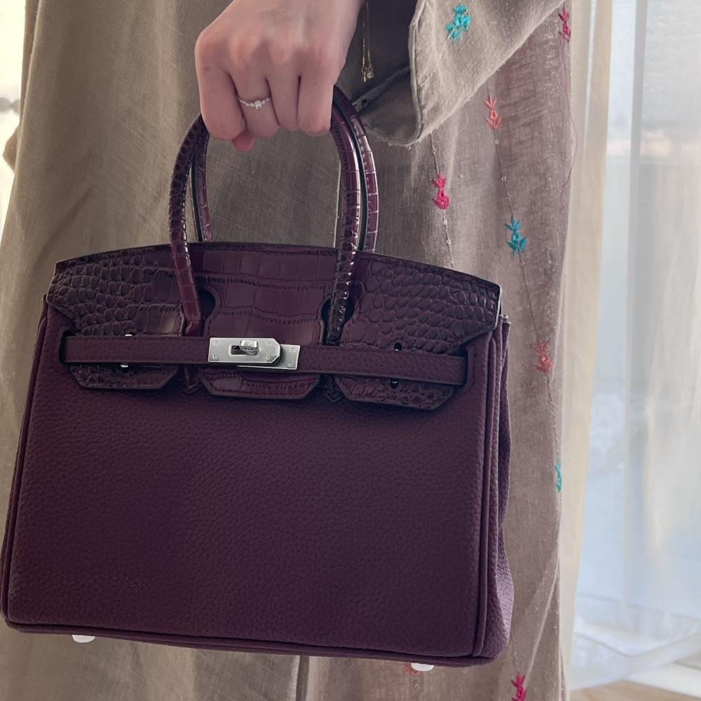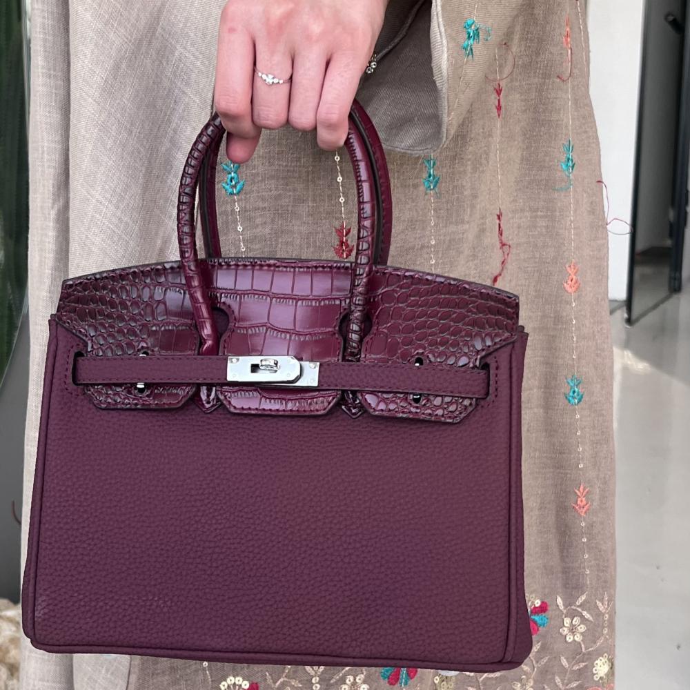 بيركن مقاس 25 سم قفل فضي لون عنابي كروك