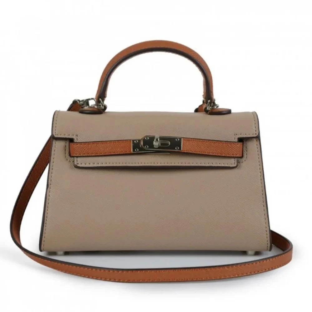 كايلي مقاس 22 سم قفل فضي لون كاكي بني