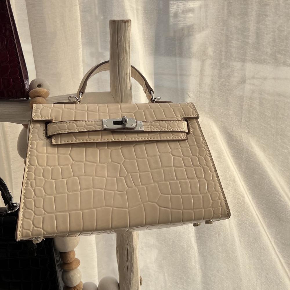 كيلي كروك مقاس 22 سم قفل فضي لون ابيض